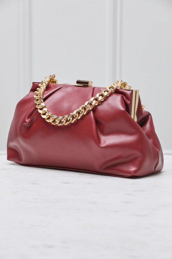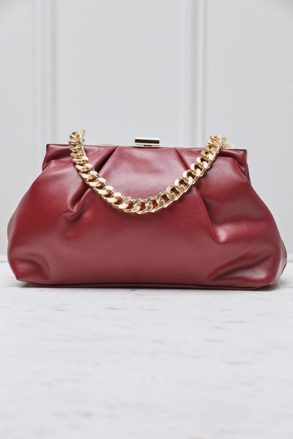 This wine-colored faux leather clutch is the perfect accessory to complete your look. With gold hardware, full interior lining, removable shoulder chain, and snap closure, it’s giving us an updated vintage feel! Spacious enough to hold all your essentials, what’s not to love?