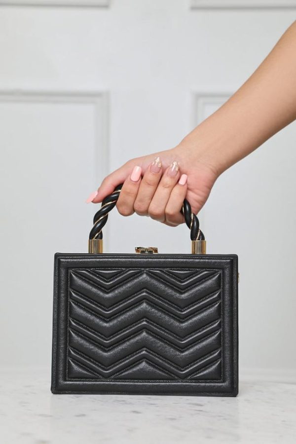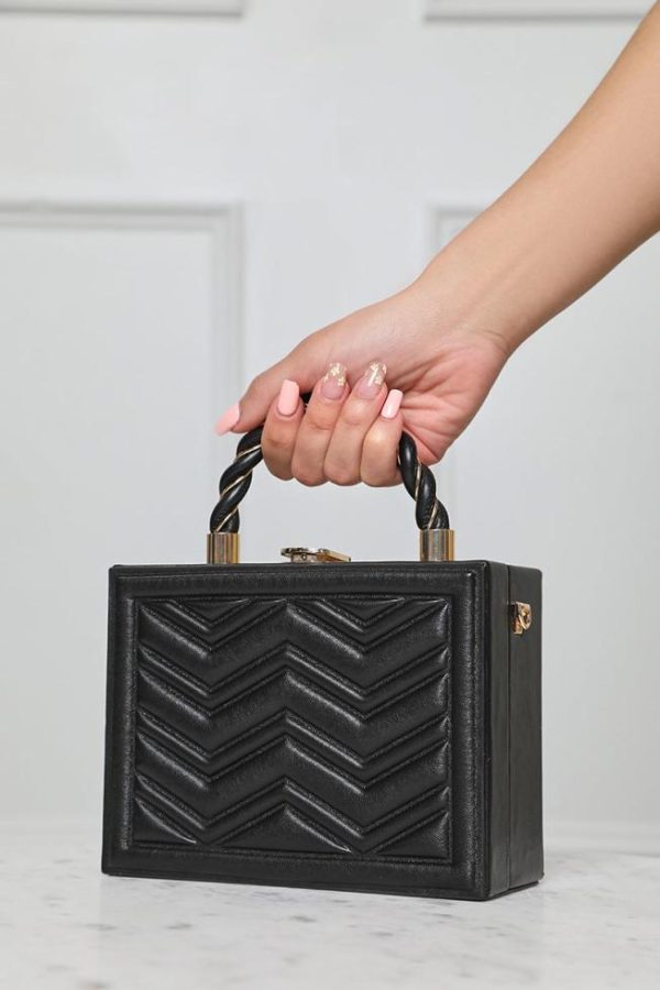 Dress for formal occasions with ease with this Othilia Trunk Purse. The easy-to-use clasp opens to reveal plenty of room to stow your essentials. Featuring a rope detail on the handle, and a geometric pattern on the outside.