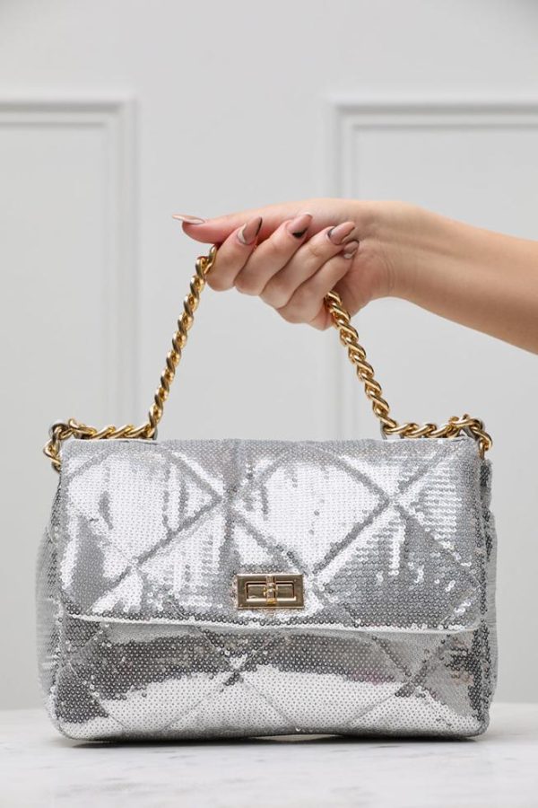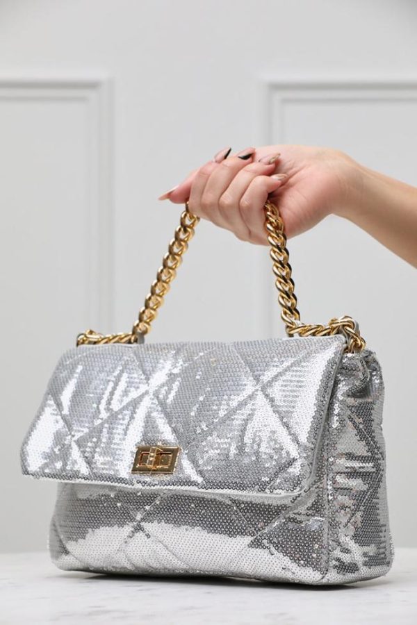 Complete your look with this chic quilted faux leather bag featuring a fold over design, thick gold chain, removable crossbody strap, fully-lined interior and inside zipper.