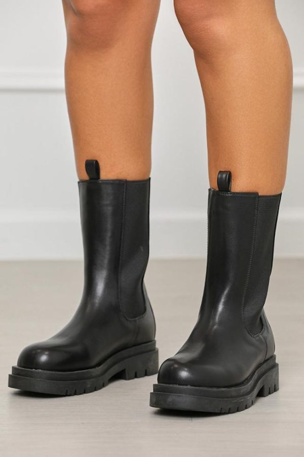 Take your look to all new heights in these chunky boots featuring a faux leather material and chunky sole; we’re obsessed! Add these hot boots to your outfit to elevate your look.Black