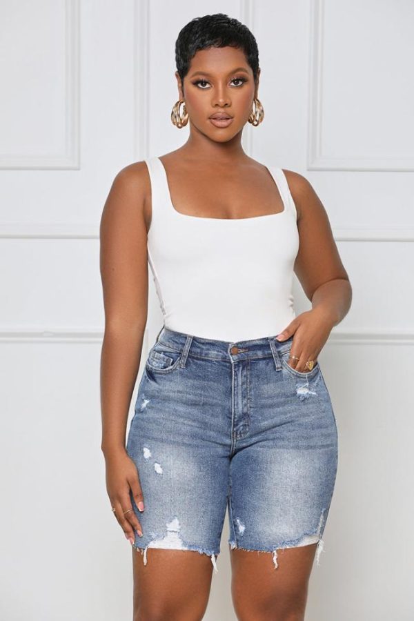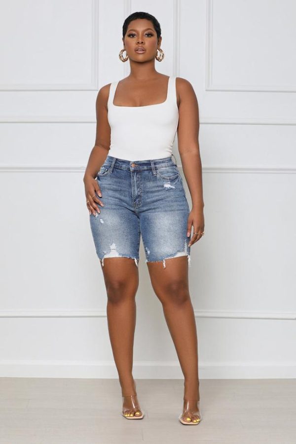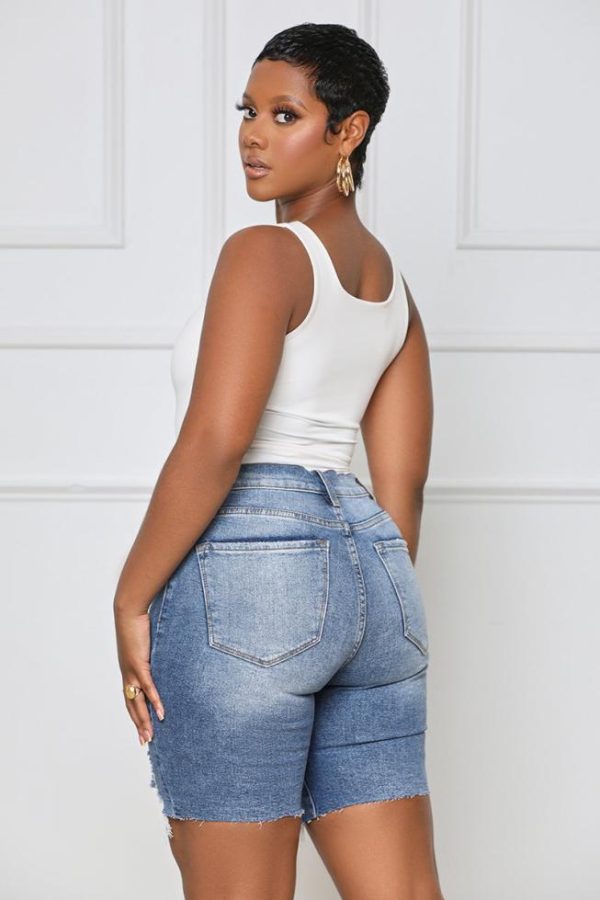 Women Bottoms | Lilly’s Kloset Distressed Mini Denim Biker Shorts Blue