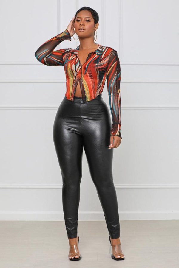 Every fashionista knows she must have a pair of faux leatherleggings in her fall fashion wardrobe. Featuring a high fashion faux leather fabric and body sculptingfit. Make these pants this seasons go-to when dressing them up with your favorite pieces from home!