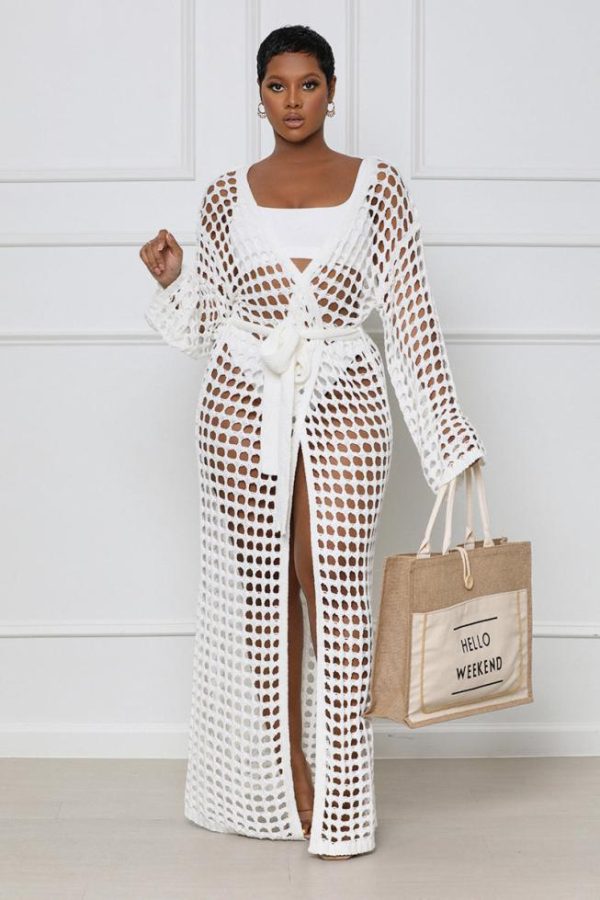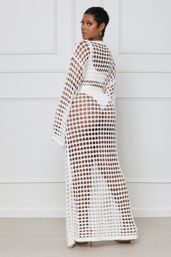 Elevate your swim look in this one-of-a-kind printed maxi kimono tie front cover-up. Pair it with a matching dress or swimsuit to complete the set. Layer it with a strapless bikini, short shorts, and a tank for an easy effortless look or over your favorite LBD!