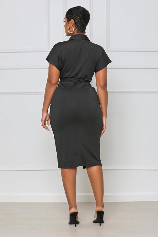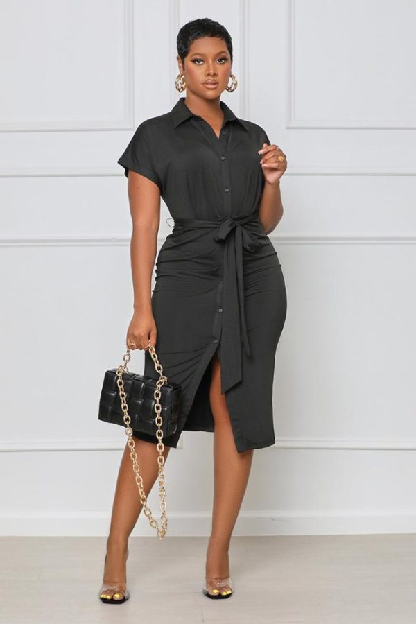 Make a statement at any event with the Chic Me Out Midi Dress. Perfect to wear to work or a networking event, this collared midi dress is made in a soft material and features a button-up front and wrap tie detail. Pair with black heels and a structured handbag!