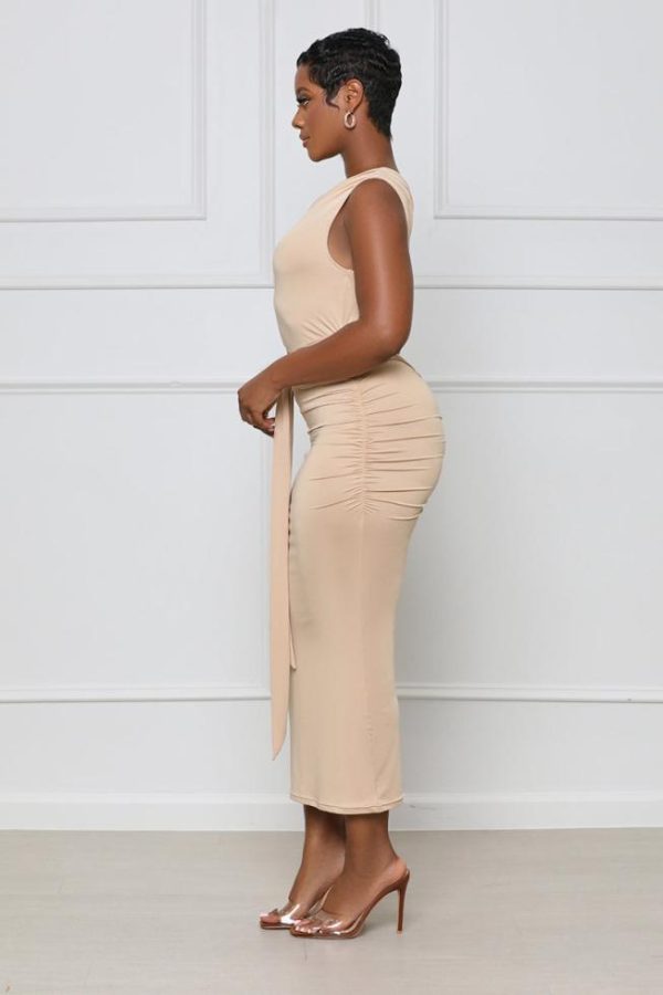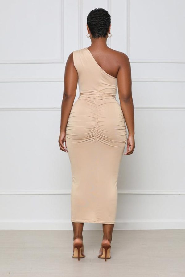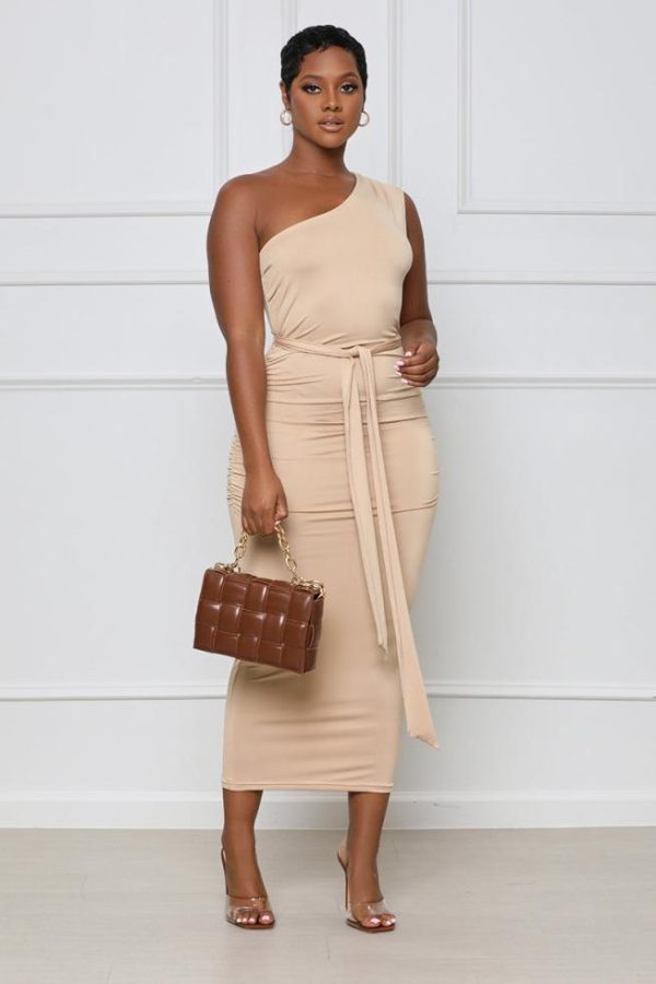 Look no further for your next night-out dress because this One Shoulder Ruched Midi Dress is the one for you! Featuring a one-shoulder neckline, stretchy yet body sculpting material, ruched back detailing, and waist belt. Complete this look with a stylish high heel and handbag.