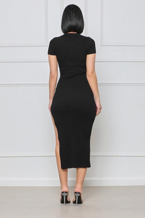 Women Dresses | Lilly’s Kloset Plunge Collared Ribbed Midi Dress Black