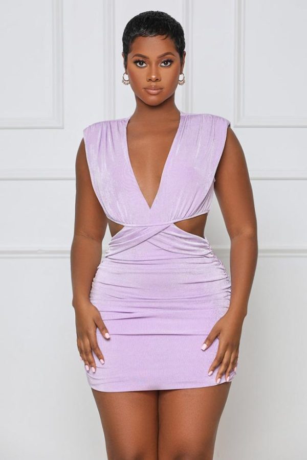 Let this mesmerizing Plunge Cut Out Mini Dress wow all onlookers. Featuring a plunging v neckline complete with lightly padded shoulders and ruching at the shoulders and sides. Emphasizing every curve, this gem of a dress is perfect for all types of celebrations, from birthdays to weddings. Pair with a statement clutch and fashionable heels to create an unforgettable outfit.