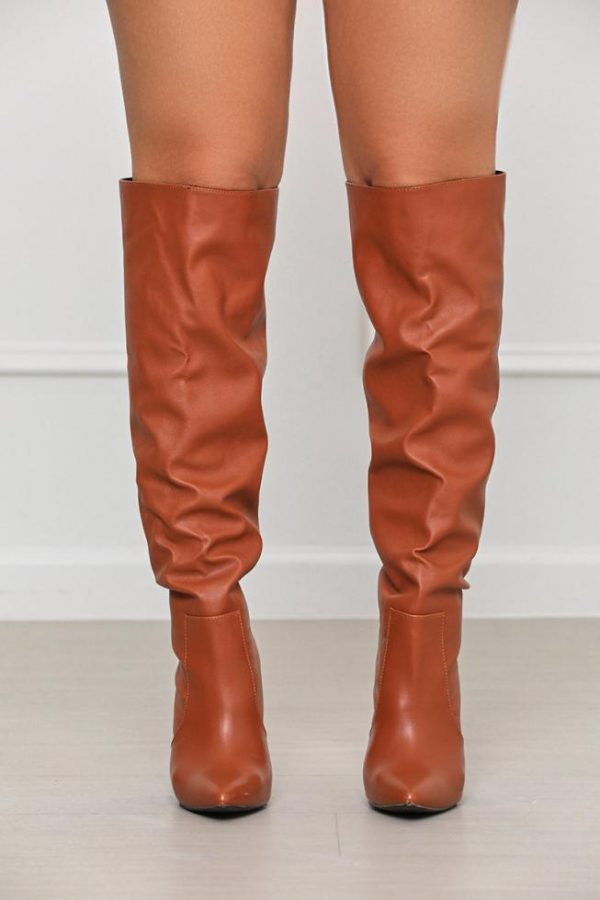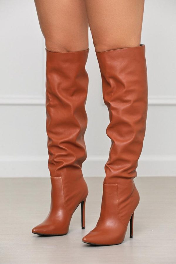Faux leather knee high boots featuring a 4.75 inch heel and pointed toe. Pair these with your favorite skinny jeans, statement top and handbag for a complete look.
