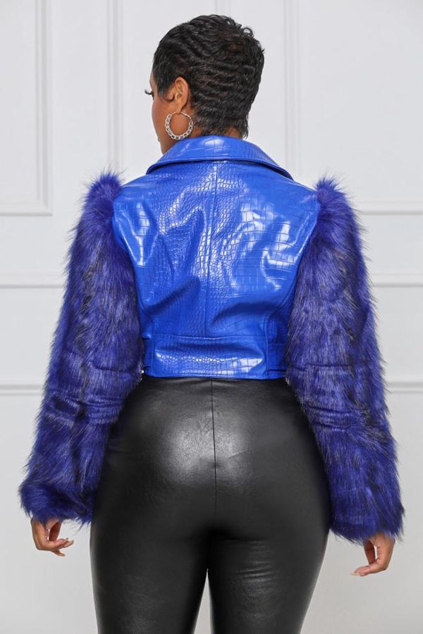We’re giving biker chic vibes with this jacket and we’re totally obsessed! This edgy jacket comes in a faux leather material fully lined featuring faux fur sleeves, zipper closure and adjustable belt. Pair with faux leather leggings or jeans and a chic bootie for a complete look.