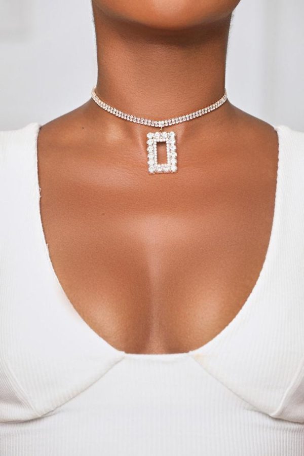 Women Jewelry | Lilly’s Kloset Rhinestone Rectangular Drop Choker Gold