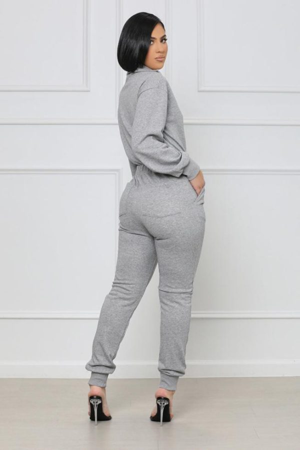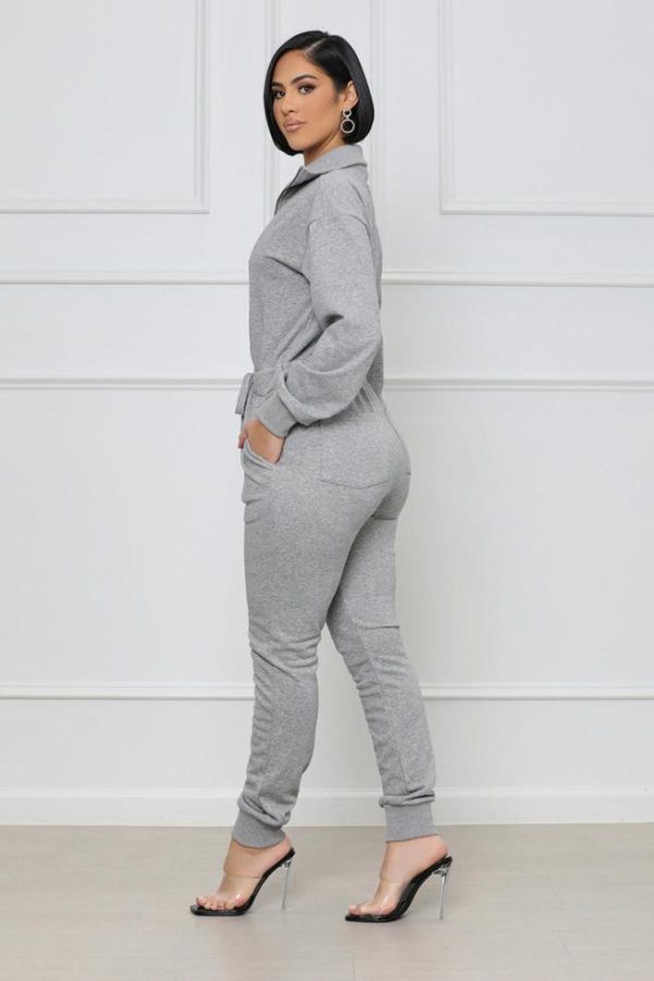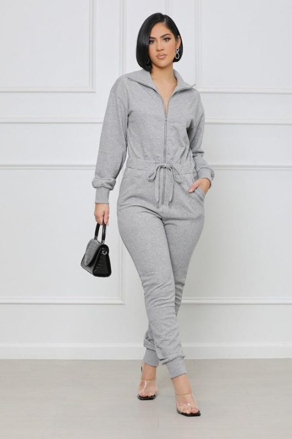 This super comfy jumpsuit featuring a zip closure, elastic waistband, cozy interior, and front pockets is perfect for those cooler on-the-go days. Pair with a high heel mule or sneaker for a look we love!