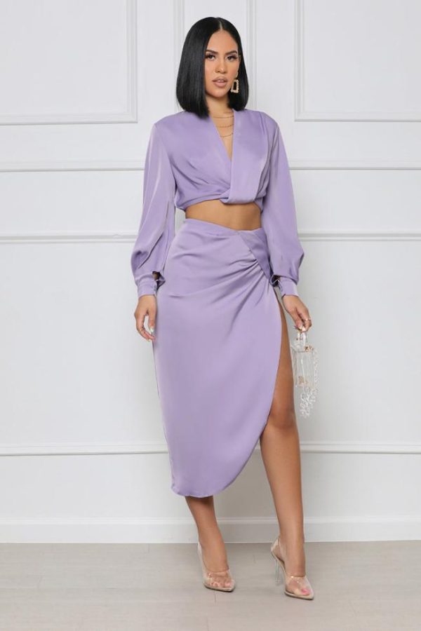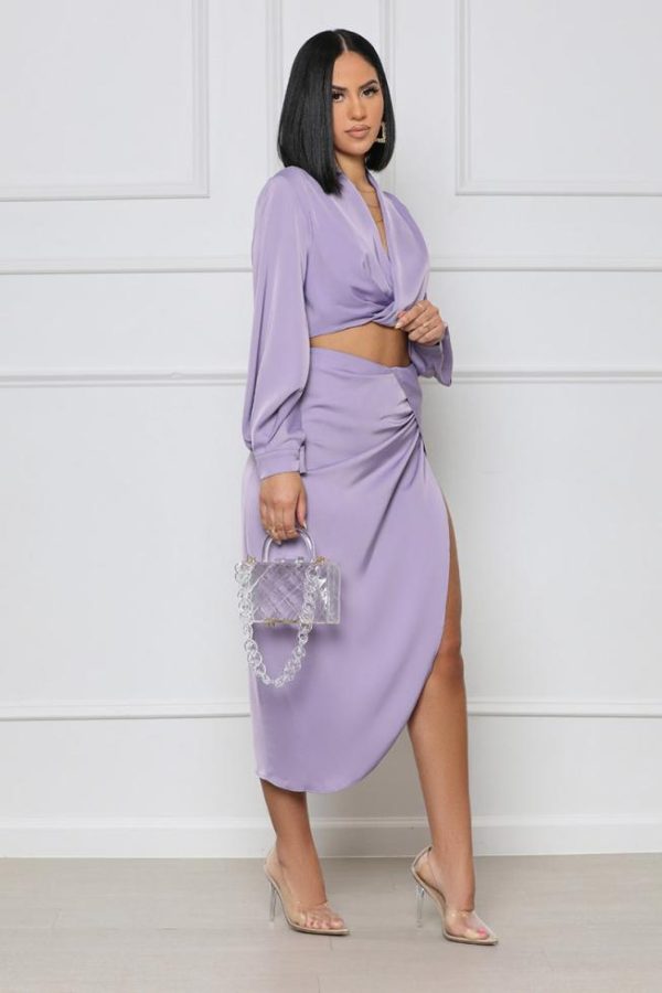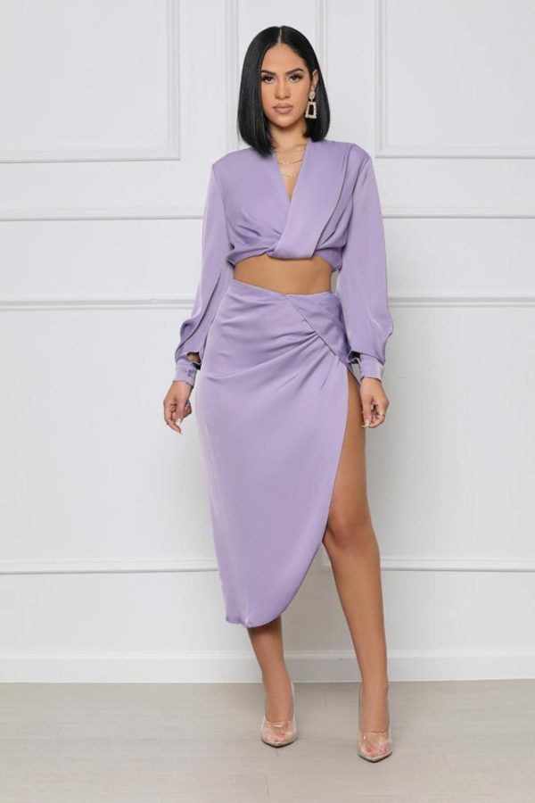 Your day is full of experiences and encounters. The Here To Stay Crop Skirt Set lets you embrace the luxury of life with soft silky fabric, long sleeves, and an asymmetrical plunging crop top. Pair with nude accessories to brunch or vacation, or any time you have a moment to relax in peace and style.