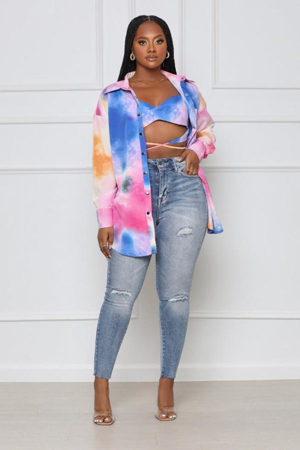 Our Pretty Pleasing Button Up Set evokes vacationvibes. This set is a fashion statement that’s great for just about any occasion. The blouse has long sleeves and a mid-thigh length, while the matching bikini top has adjustable straps to ensure the perfect fit. Pair these pieces with denim shorts, sandal heels, and a straw bag for an on-trend look with a luxe vibe.