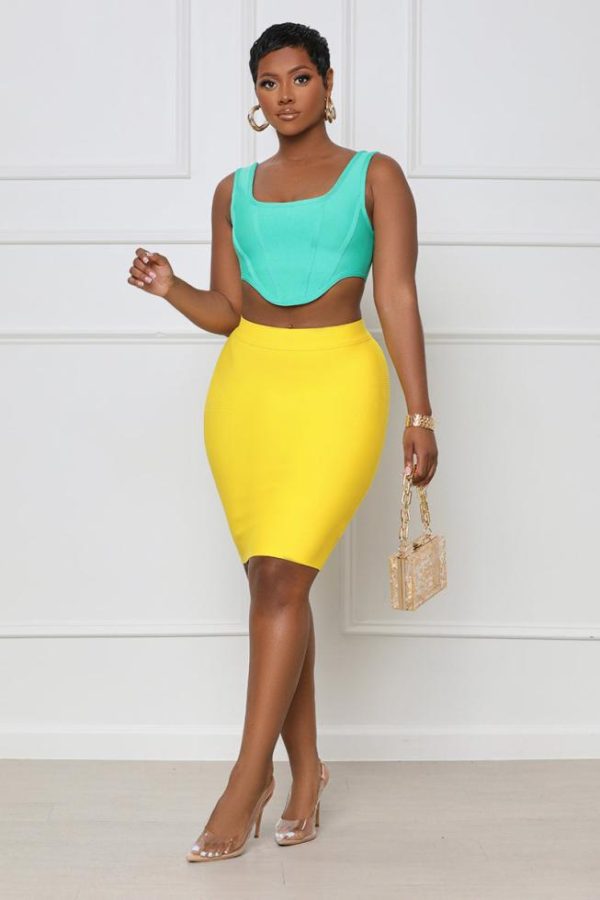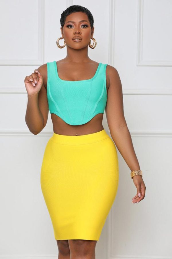 Women Skirts | Lilly’s Kloset Crazy About You Bandage Skirt Set Green Yellow