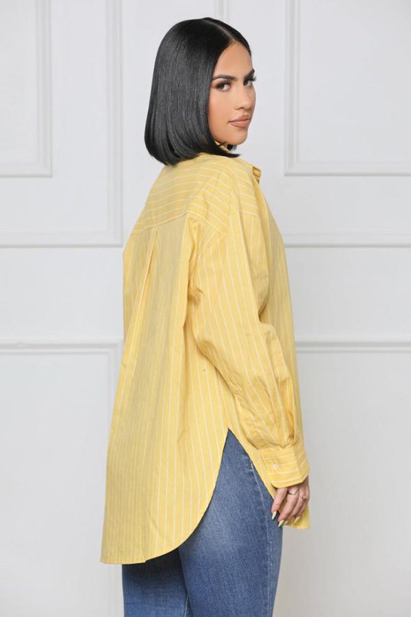 Our Sunny Days Button-Down Shirt serves many purposes from a swimsuit cover-up to a shirt that can be worn with shorts. This shirt features a classic collar neckline, button-down closure, long cuff sleeves, and stripe design. Style with a denim short, high heel, and handbag for an effortlessly chic errand running outfit of the day.